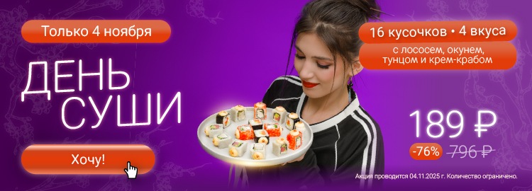 Мы каждый месяц придумываем интересные и выгодные акции и скидки для клиентов, также у нас есть и постоянные акции. Например, в день рождения именинник получает подарочную Филадельфию! А еще мы предлагаем вам сеты со скидкой при самовывозе. Со всеми остальными акциями Фудзиямы можно ознакомиться здесь. А чтобы поучаствовать в интересных конкурсах, вступайте в нашу группу ВКонтакте Фудзияма суши Уфа