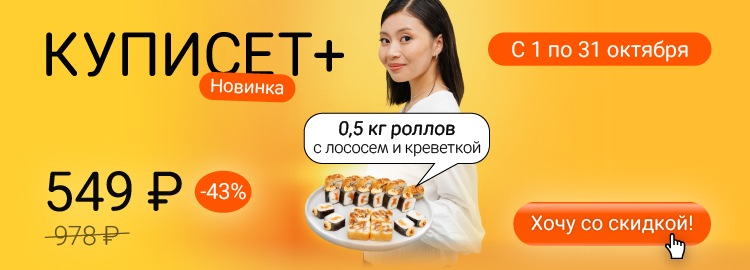 Мы каждый месяц придумываем интересные и выгодные акции и скидки для клиентов, также у нас есть и постоянные акции. Например, в день рождения именинник получает подарочную Филадельфию! А еще мы предлагаем вам сеты со скидкой при самовывозе. Со всеми остальными акциями Фудзиямы можно ознакомиться здесь. А чтобы поучаствовать в интересных конкурсах, вступайте в нашу группу ВКонтакте Фудзияма суши Чебоксары!